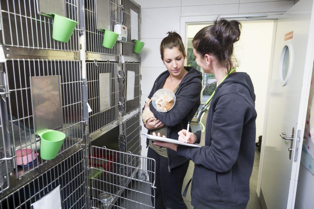 Nach der OP muss Ihre Katze eventuell einen Body oder Halskragen tragen, damit die Kastrationswunde geschützt bleibt. Nach zehn Tagen werden beim Weibchen die Fäden gezogen, sollte die Wunde nicht geklebt worden sein. Bitte erkundigen Sie sich bei uns danach!